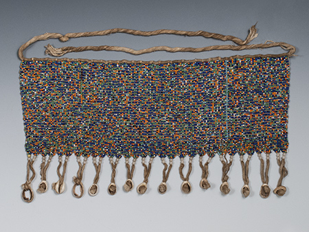 Pikuran (cache-sexe) Bana Guili people, Mandara Mountains, Cameroon Glass trade beads, cotton string, cowrie shells 16" (40.5 cm) wide by 8" (20.2 cm) high Mid 20th century Ex. William Simmons collection, New York #6678 SOLD