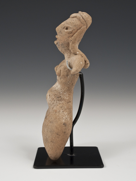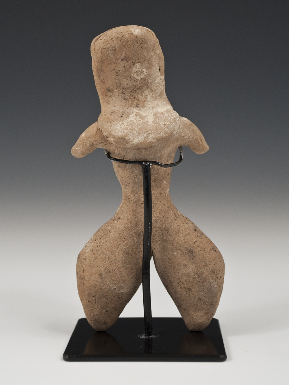 Female figure, "Pretty lady" Tlatlico, Mexico Terracotta 4-5/8" (11.7 cm) high Circa 1500-500 B.C. #9553 A classic D4 type female figure, with characteristic bulbous legs and diminutive arms.