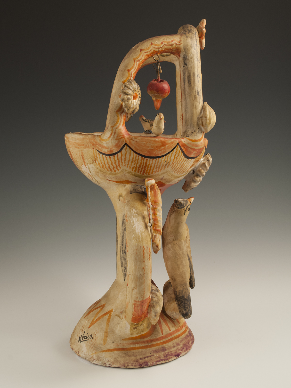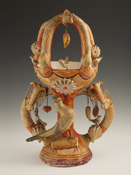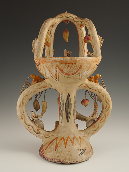 This charming incense burner includes birds, seashells flowers, fruit and rarely seen, two lobsters. It's in great shape and the aniline dyes have faded nicely over the decades.