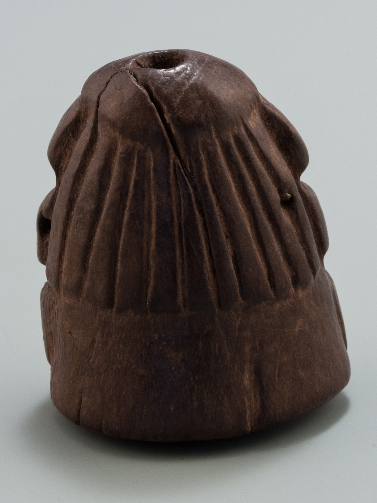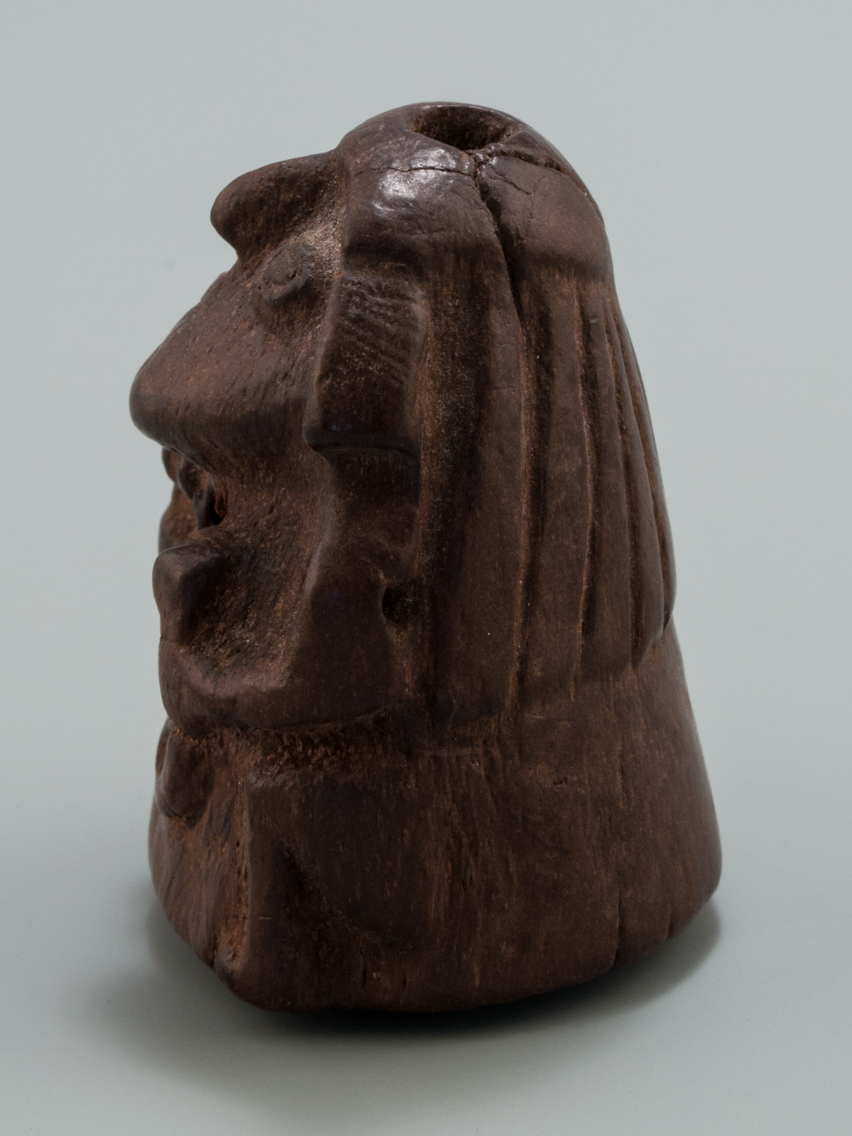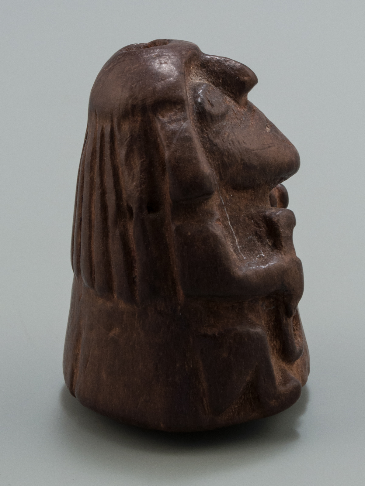 This lime container depicts a 'stargazer' shaman holding the tools of his trade. Lime containers were personal items and a 'kill hole' was made in this container before it was buried with its owner. The eyes appear to be inlaid.