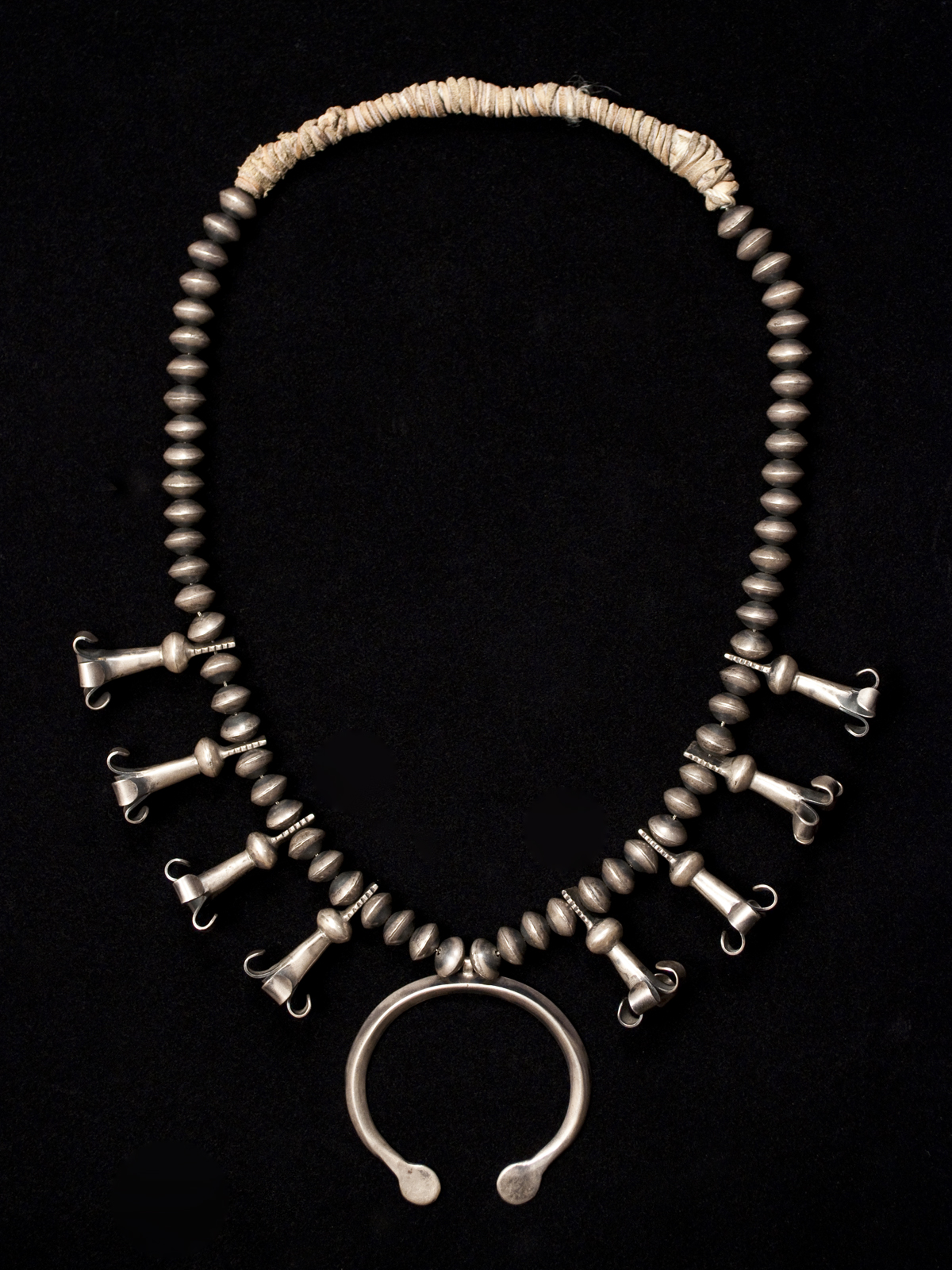 It is strung on very fine square link chain, with rawhide wrapped around a cotton string extension.