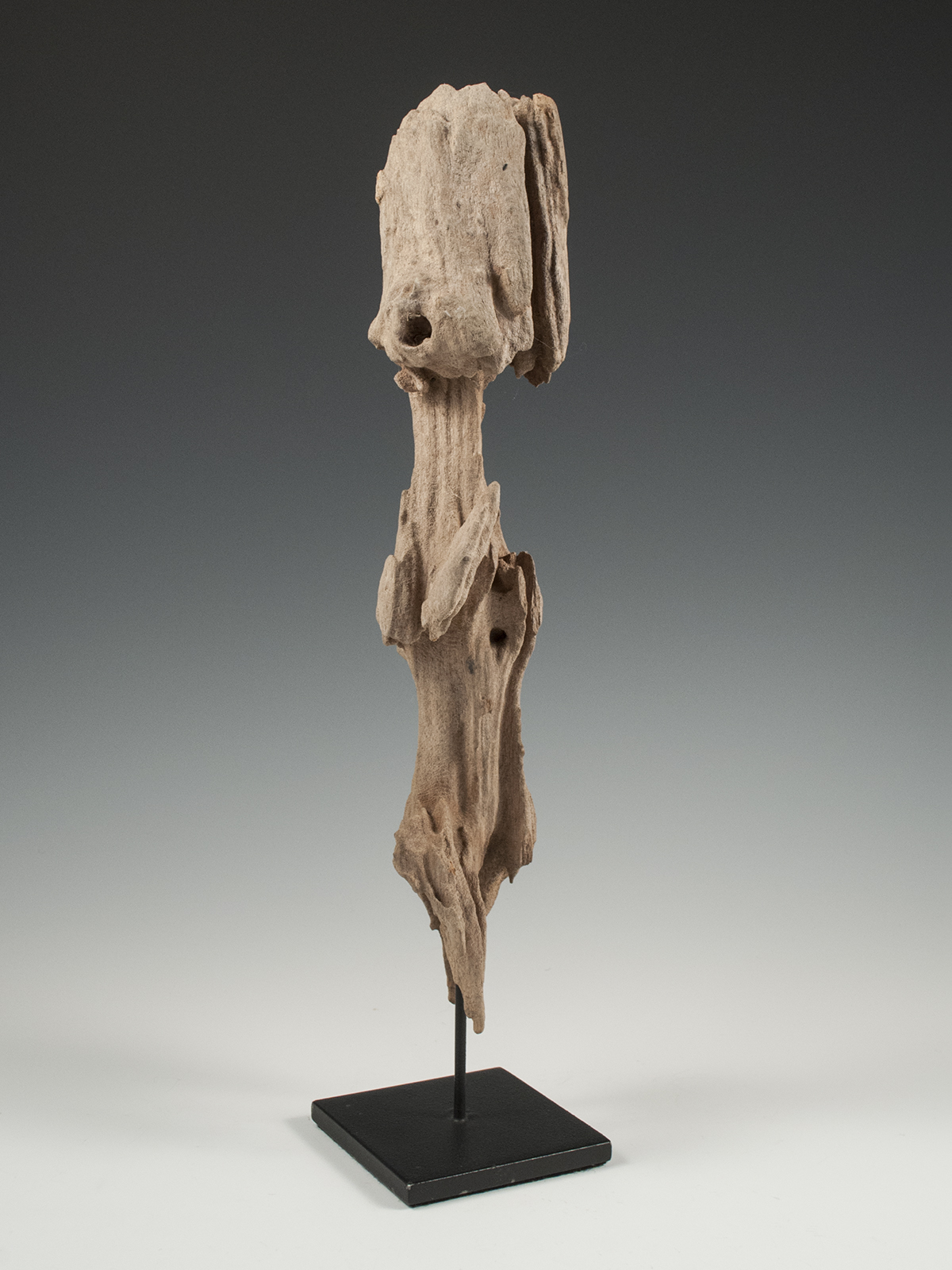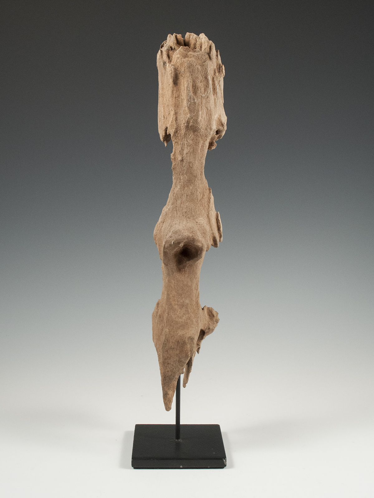 The mere essence of a protector figure remains with hands clasped in front of chest. These protective figures were placed near dwellings to ward off malevolent forces.
