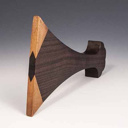 A beautiful rosewood plectrum used in plucking the strings of a chikuzen-biwa, which is a 4-5 string fretted lute used traditionally for narrative story-telling. The tips are made of notched boxwood, and some wear from use can be seen on the edges.