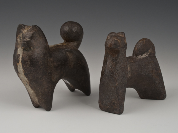 Akita okimono Japan Cast iron Mid 20th century 4.5" high Sold as a pair #3326-3327