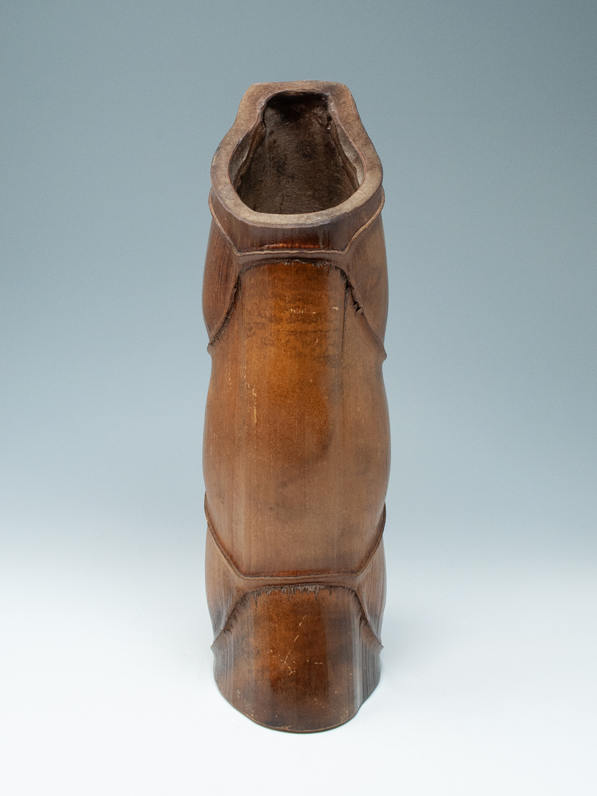 A large ikebana vase made from a length of tortoise shell bamboo. This does not hold water as it is; perhaps best used for dried flower arrangements.