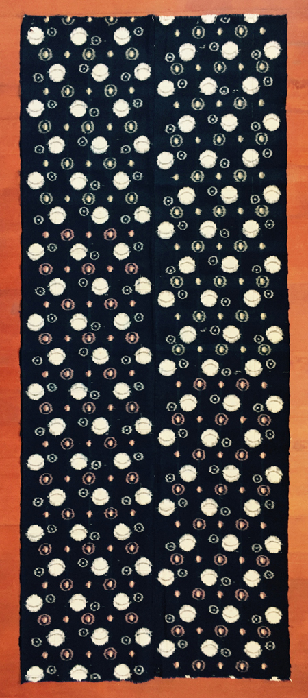 These two panels are in excellent condition with only a 1" L-shaped tear near the upper left hand corner in the photo below. It's notable that the use of madder for the smaller bubbles is only employed in some areas; the top section and upper right area have small pale yellow bubbles.