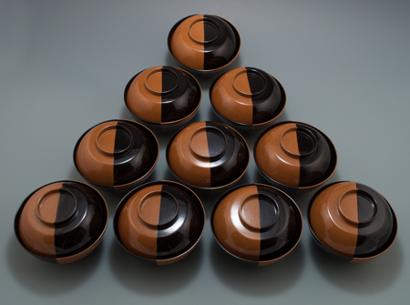 Ten lacquer soup bowls