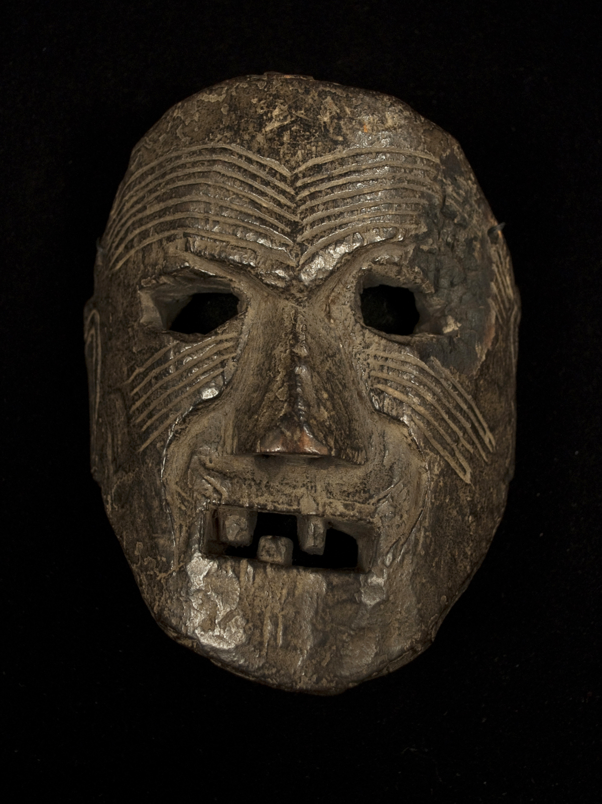 Mask Middle Hills, Nepal Wood 7" (18 cm) high by 5.5" (14 cm) wide 18th century or earlier A powerful piece with a little charred area near the right eye. #2812 Price on request |