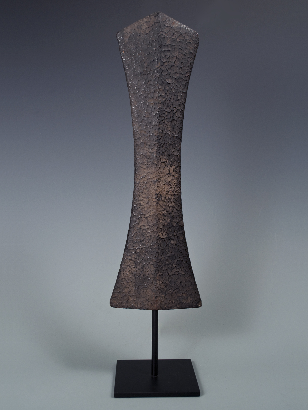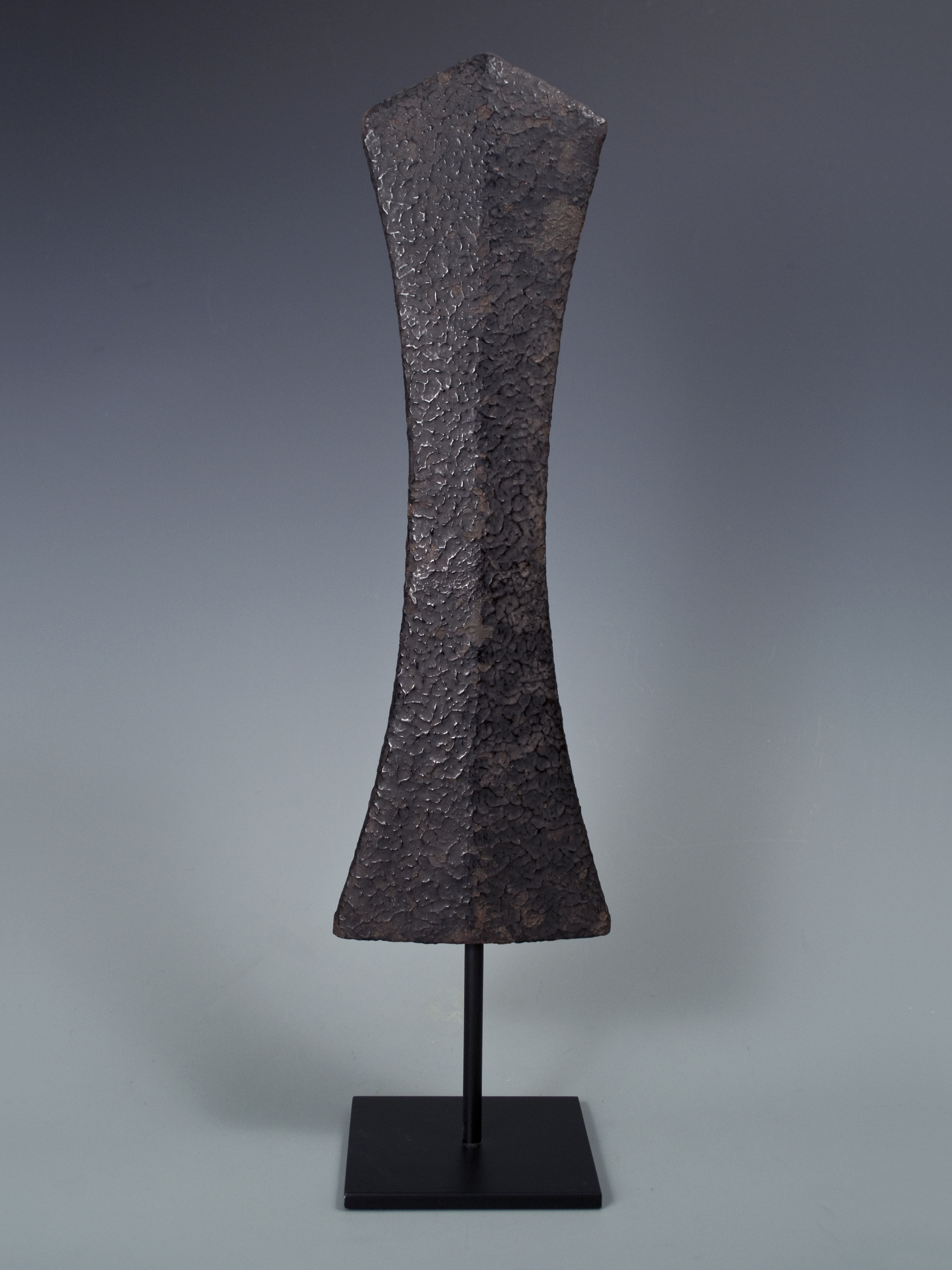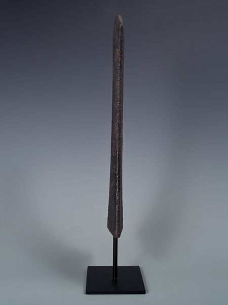 Custom base is included. This gracefully shaped saya has a fair amount of repair where there is lacquer loss, which can bee seen in the lighter areas; hence, the very reasonable price. More information and history in Saya Gallery