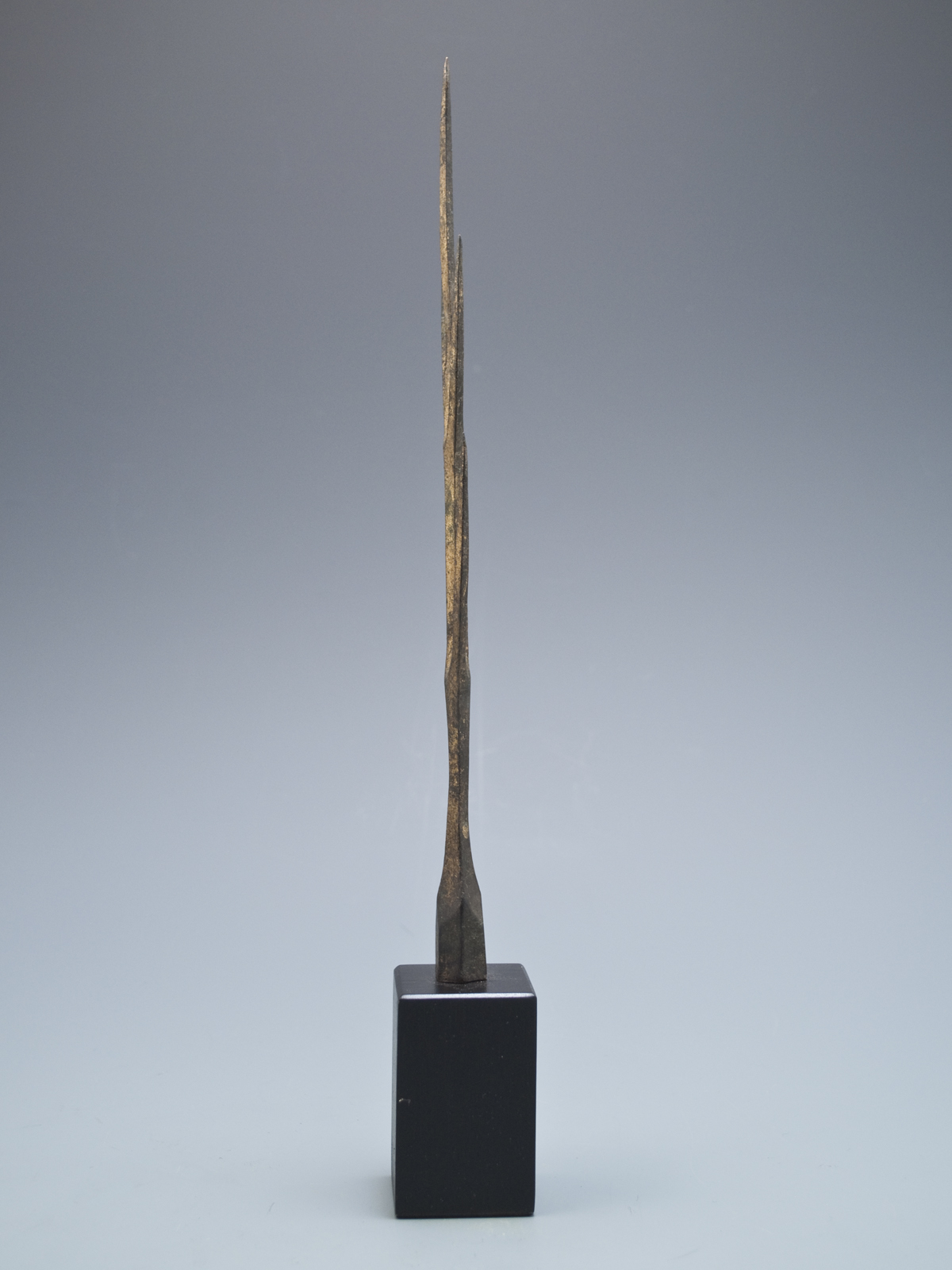 10.5" (26.7 cm) high, with wood base 13" (33 cm) high