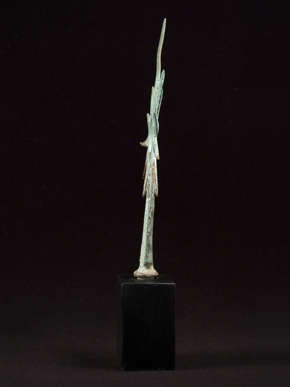 8" (20.2 cm) high, with wood base 10.5" (26.7 cm) high
