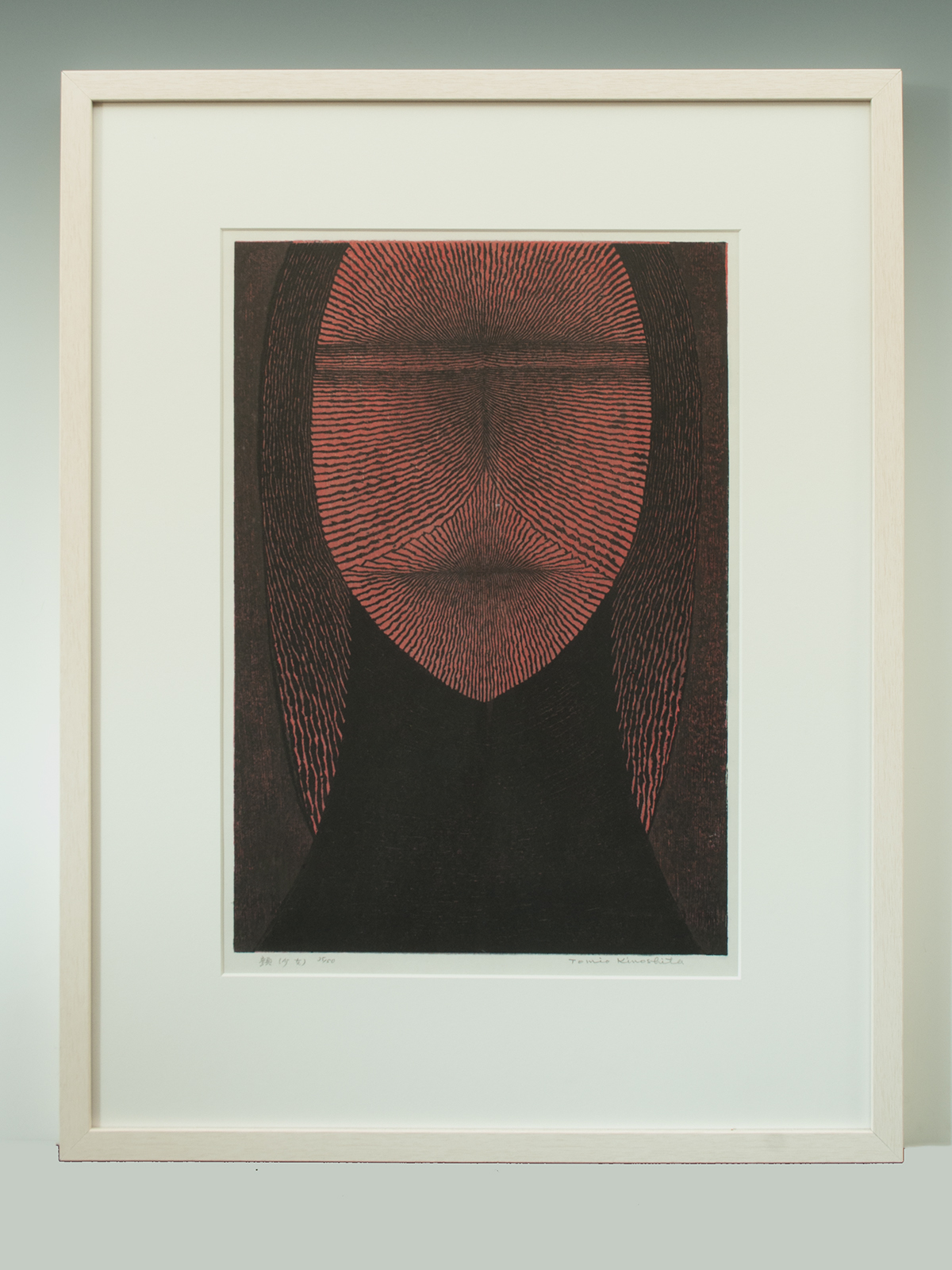 This is an unusually tender and rare print from a very small edition of Kinoshita’s woodblocks, hand cut and hand printed by the artist, not a workshop. The color is closer to the above photo, than to those below. The print is in excellent condition with no toning, no foxing and no creases. It is framed in white wood with a buff matte - please see photos