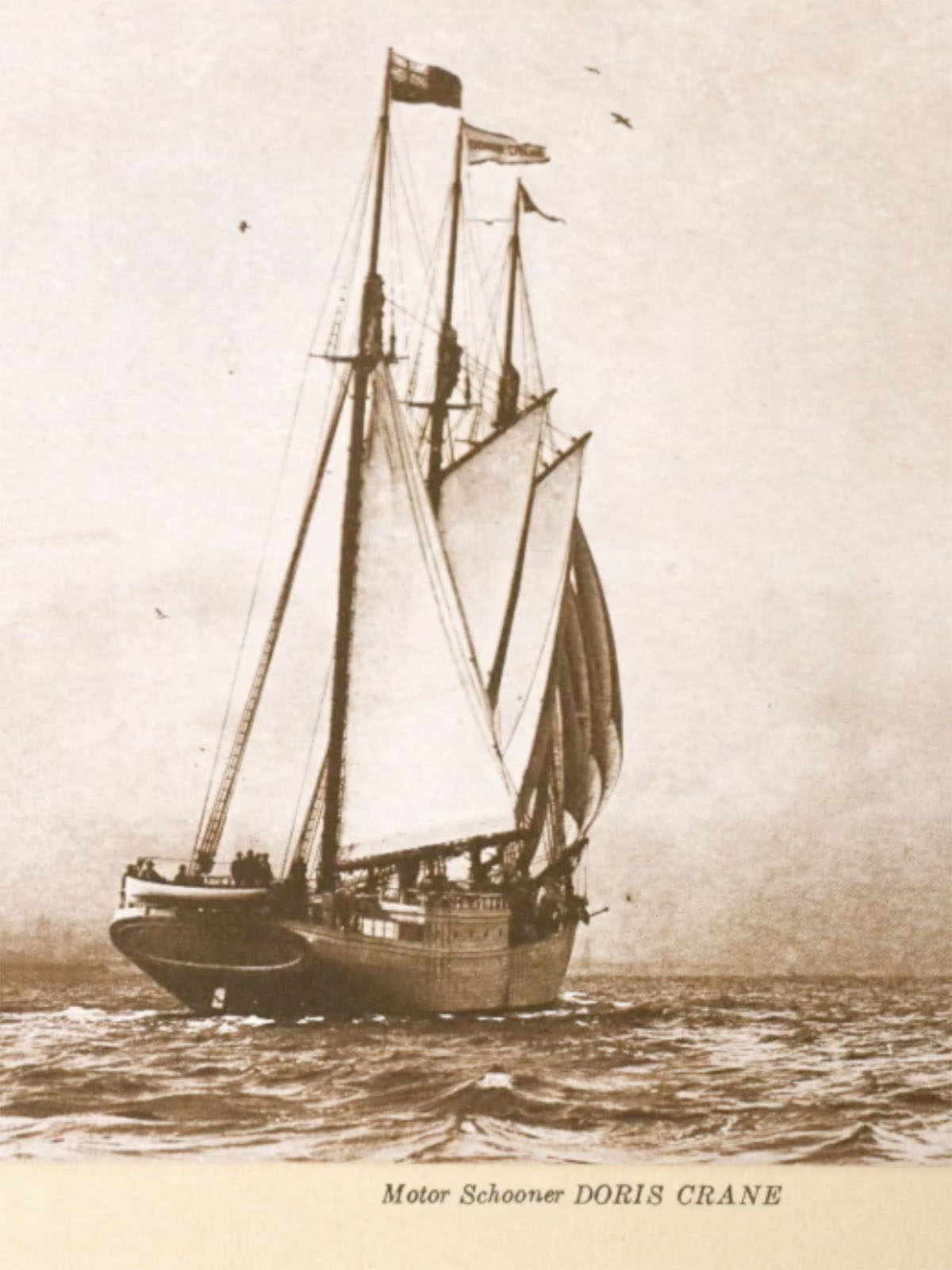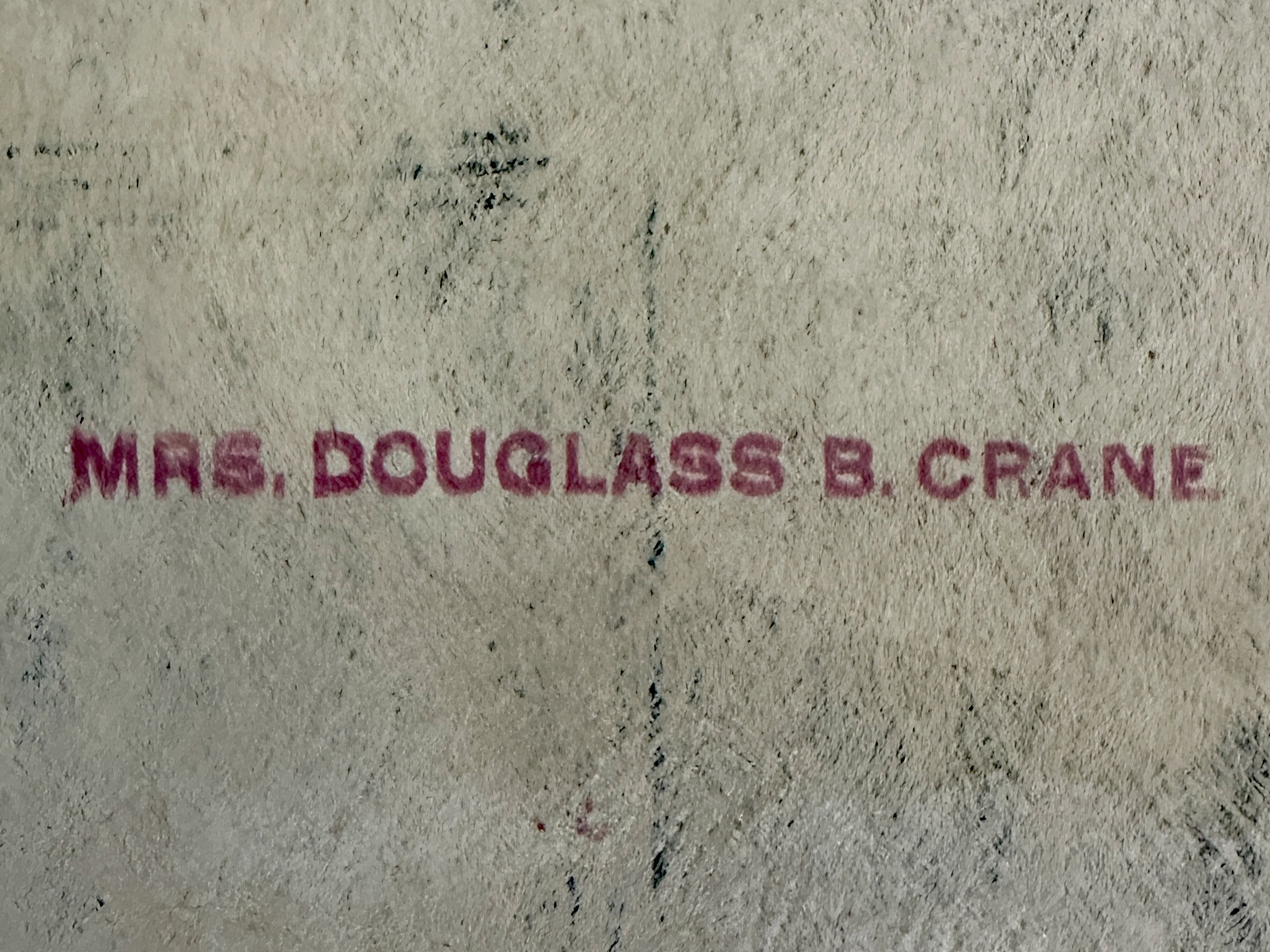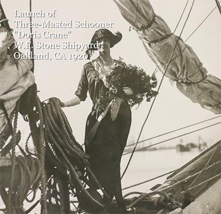 It is from the early collection of Mrs. Douglass B. Crane, whose name is stamped in red on the back of the tapa (see photo). Her husband, Douglass Barnitz Crane (1968-1949) was one of the founders of Wightman, Crane & Stuart, which is headquartered in San Francisco and remains the city’s oldest continuously operating export shipping company. They carried out export and shipping services to the South Seas using sailing vessels such as The Equator and The Doris Crane; a photo of the latter at its launch in 1920 with namesake Doris at the mast is included here.