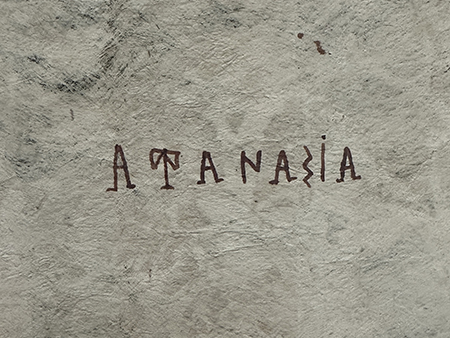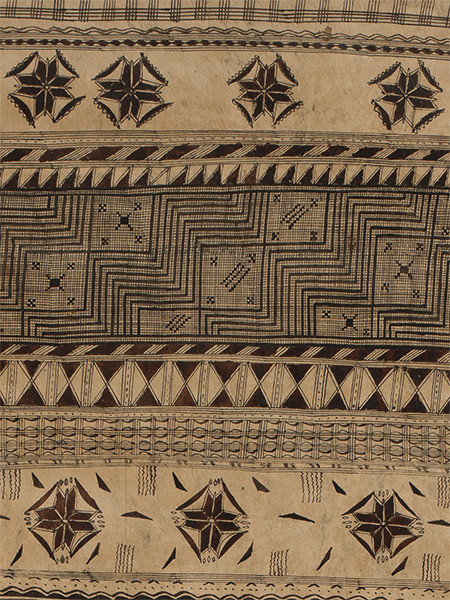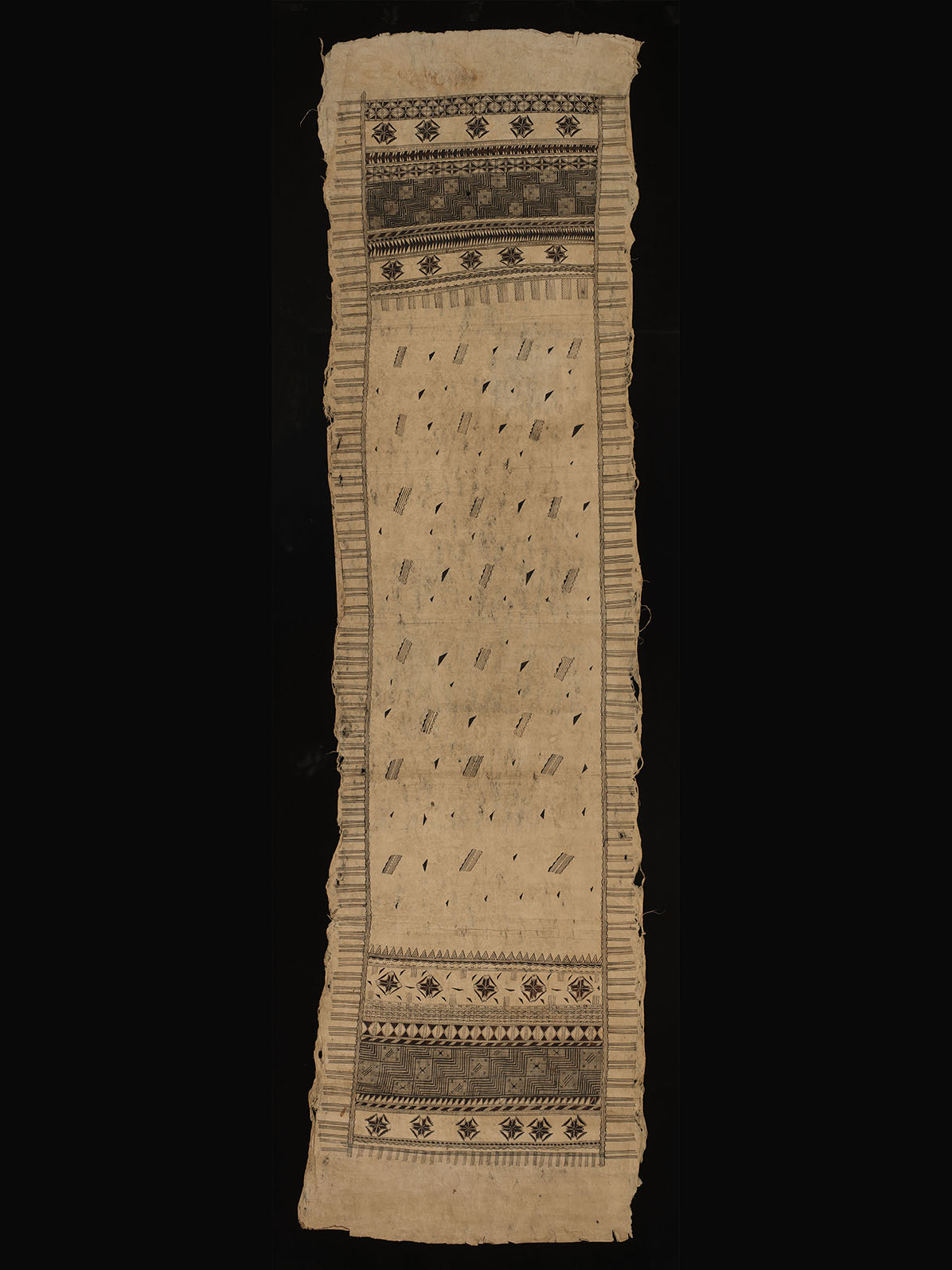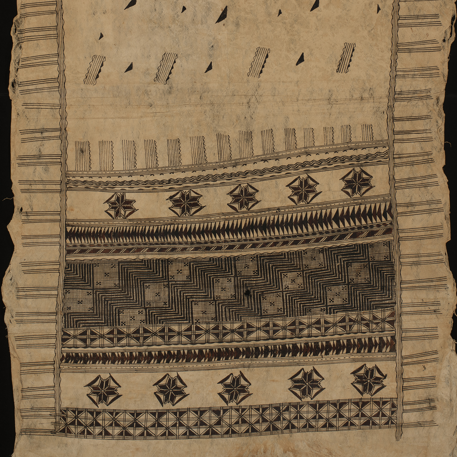 The tapa is signed Atanasia, presumably by the artist, on the reverse in a script similar to Greek (see photo). The tapa is in very good condition, with only one small hole.