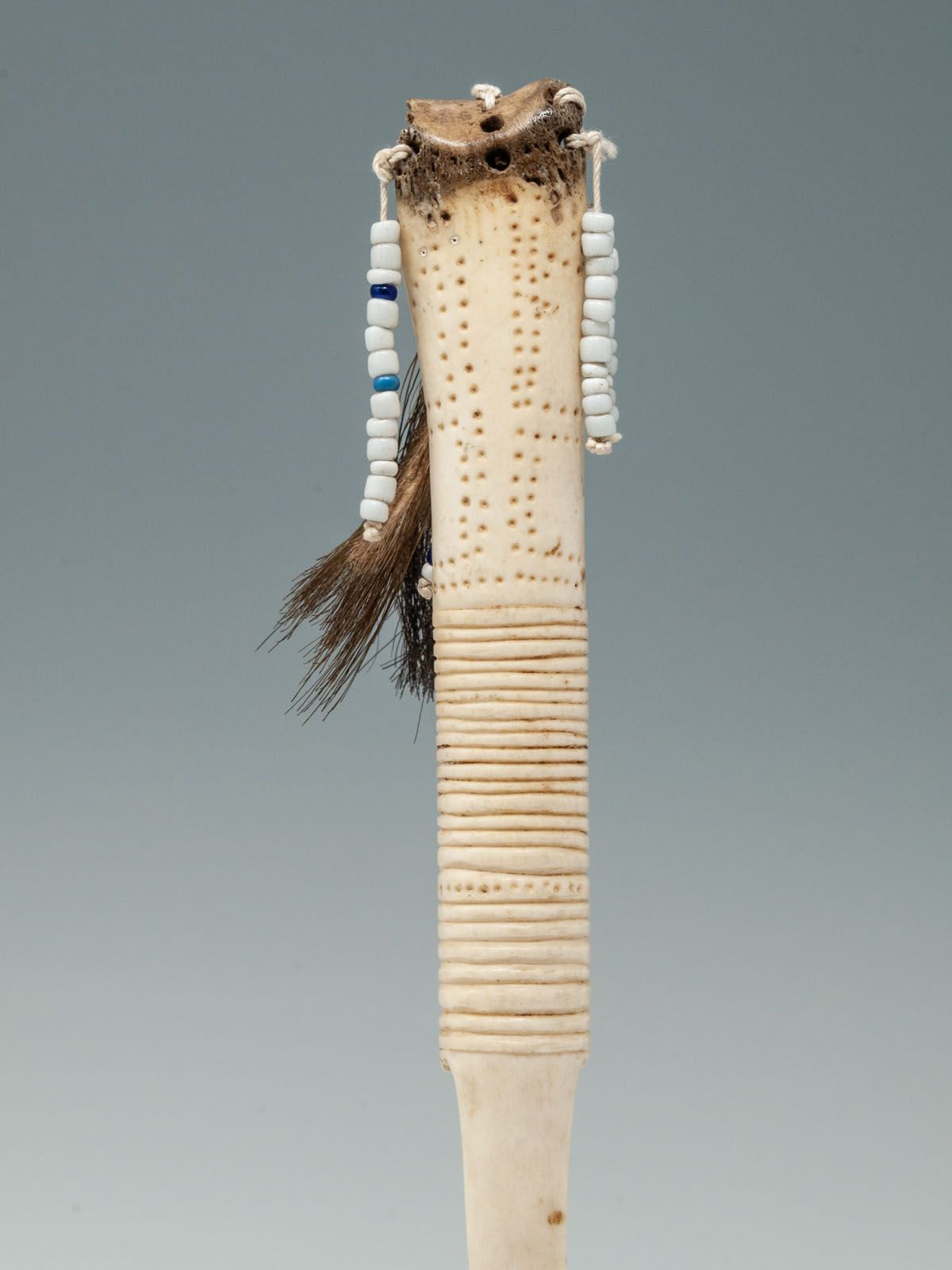 Cassowary bone, glass beads, pig's tail