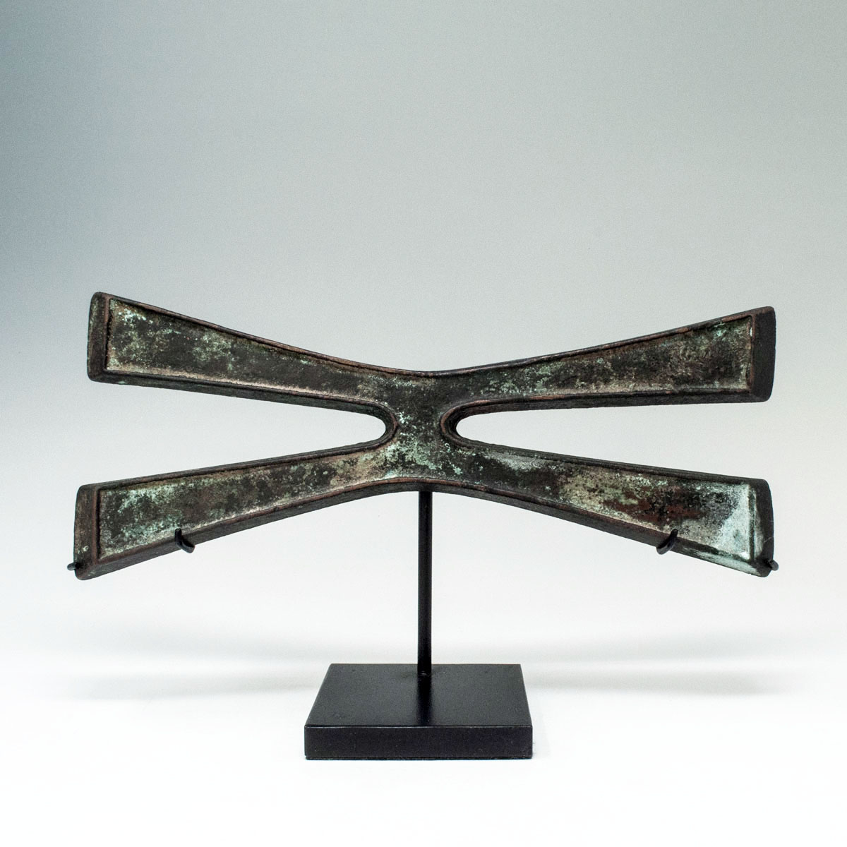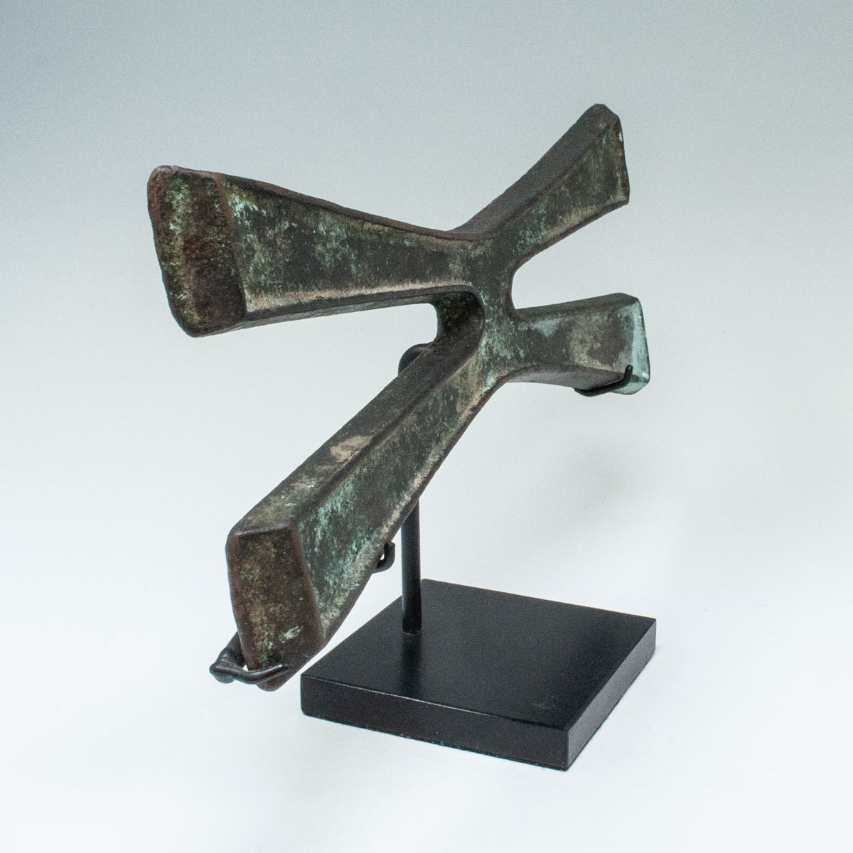 Katanga cross D. R. Congo Copper 4.75 by 11.75 inches (20.3 by 25.4 cm), 7.25 inches high as based Early 20th century Ex private collection, Northern CA #5214 $1300