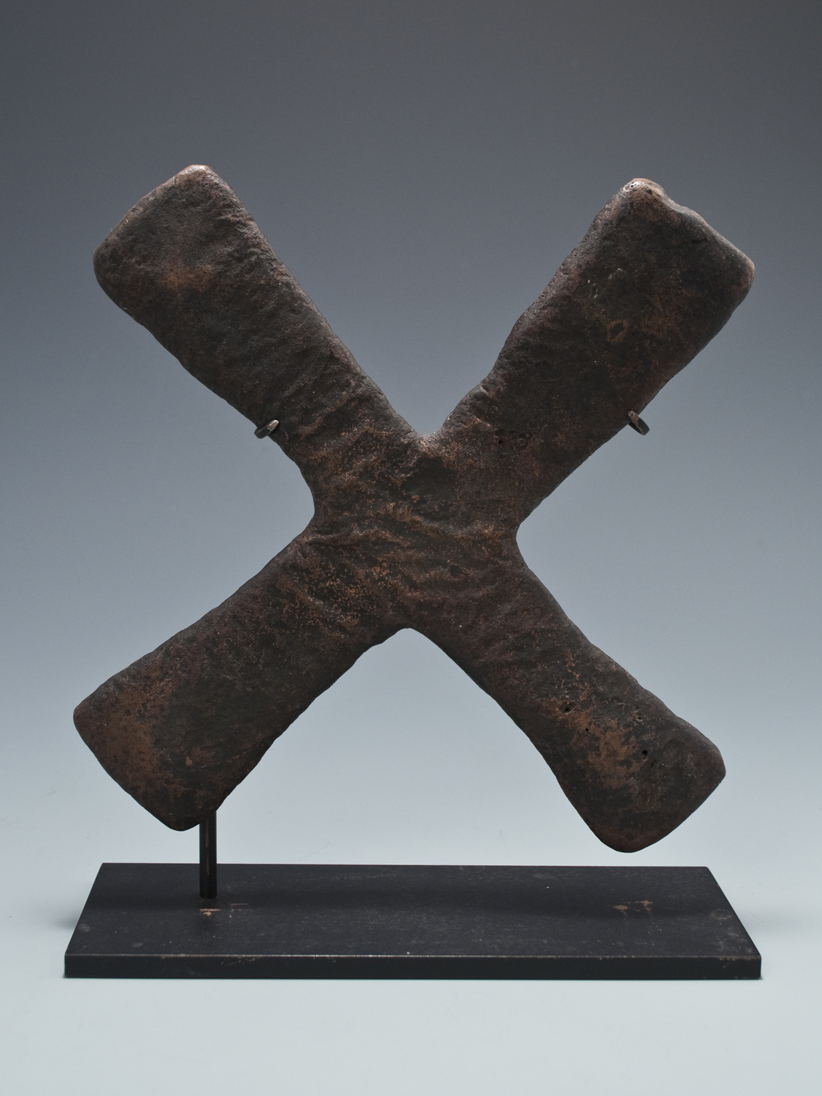 Katanga cross currency Congo (Zaire) "Puddle" cast copper alloy 8" (20.2 cm) high as based, 7" (17.8 cm) wide These pieces of currency were called “handa” and were indicators of wealth, used as bride price and traded for goods. #9604 $300