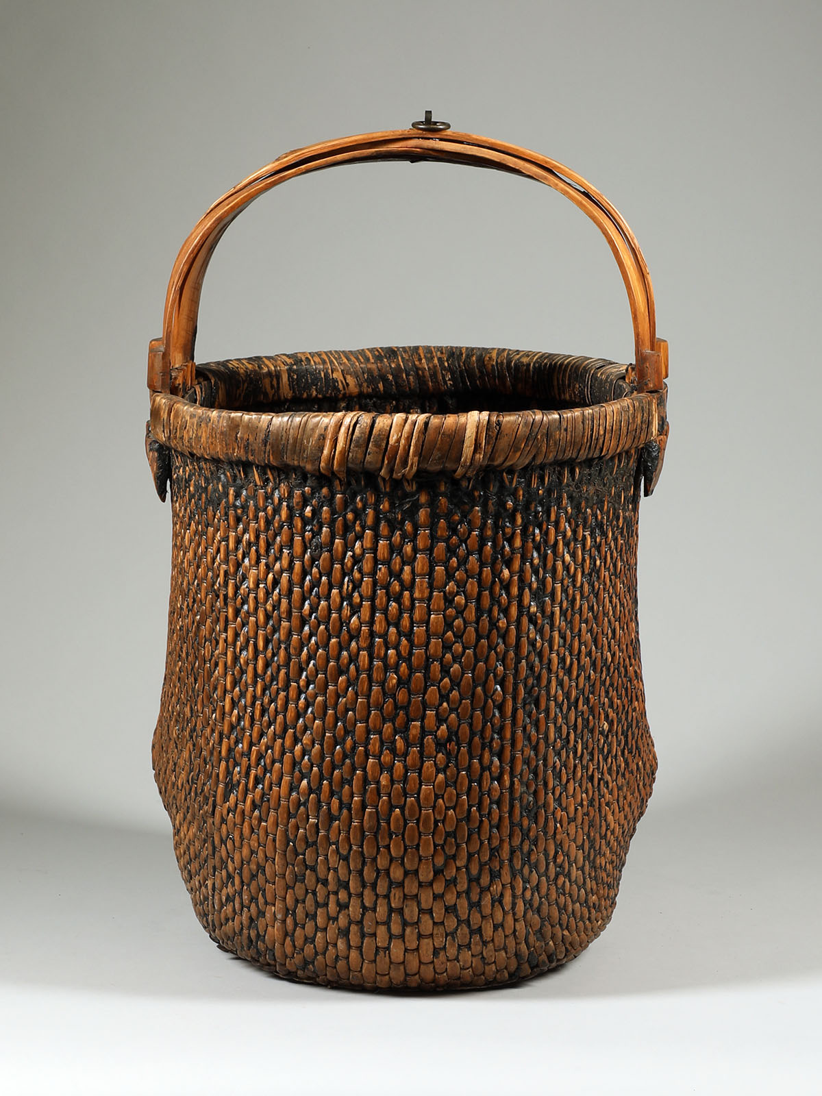 Rice basket China Reed, wood 24 inches (60.96 cm) high by 16 inches (40.64 cm) diameter Early 20th century #3817
