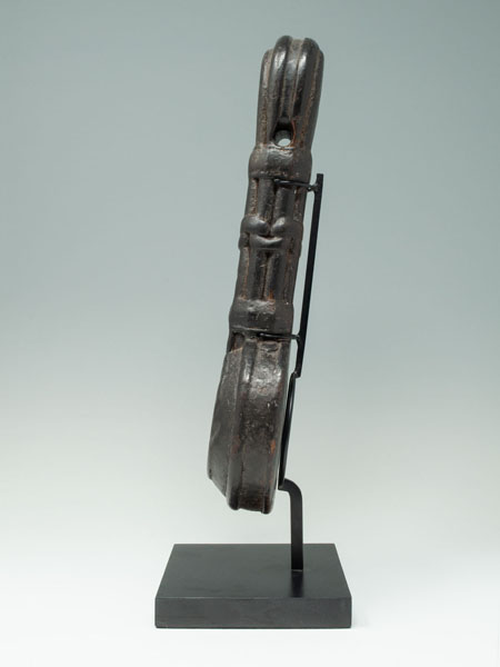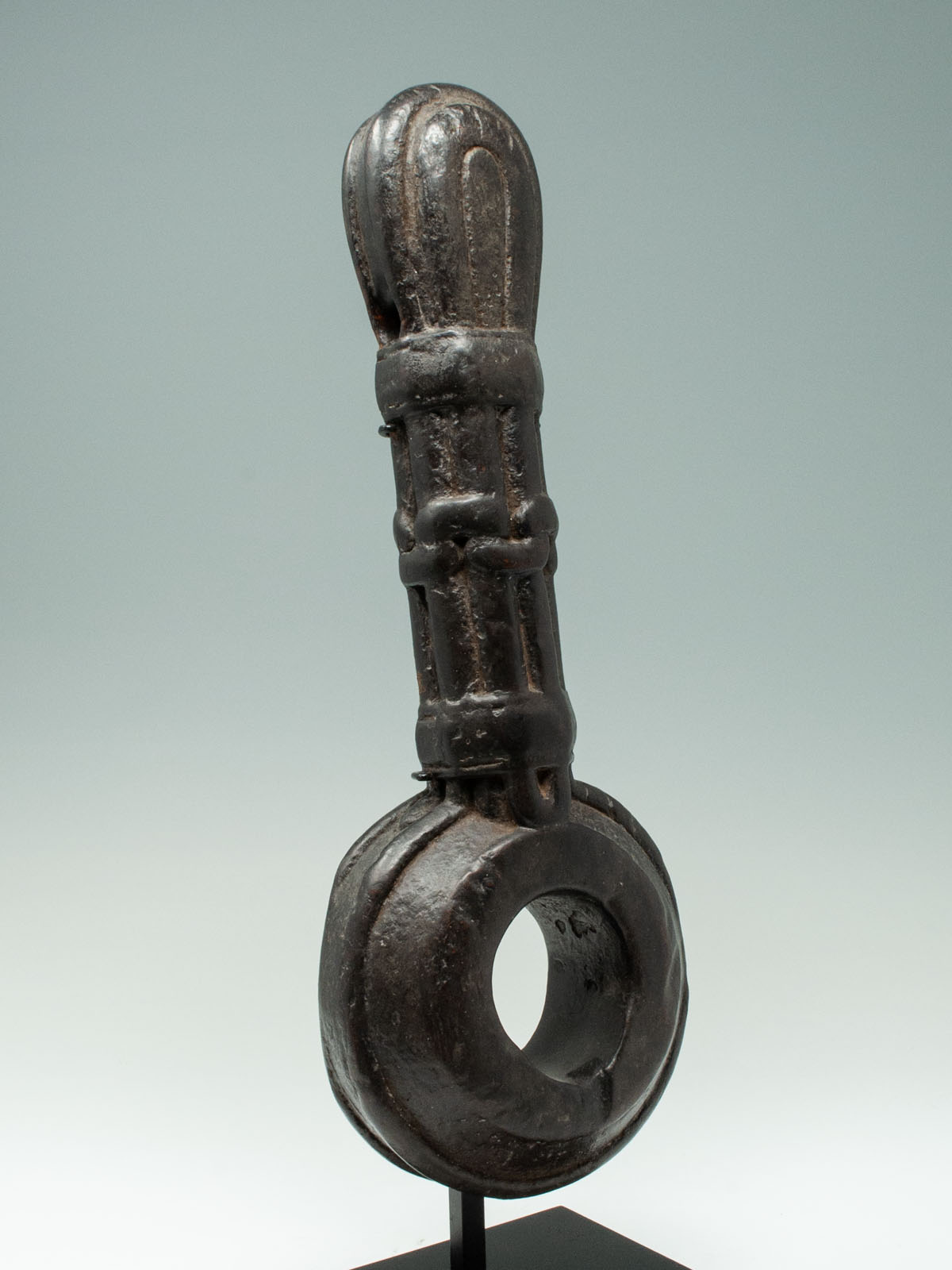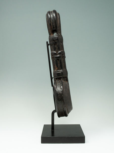 A large butter churn handle carved in the form of knotted rope. Thick encrusted patina worn smooth with time and use.