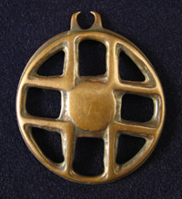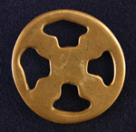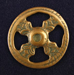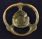 Three magical talismans known as thokchas or thogchags by the Tibetans, which literally translates as "heavenly iron." These were thought to fall from the sky as gifts and were used as powerful amulets for healing and protection, passed on from one generation to the next. These three are from the 10th to 14th century and are all Buddhist. Double dorge mandala form, bronze, 9 grams, 1.5" diameter. #2020 $250 Mandala form, copper alloy, 16.5 grams, 1-3/4" diameter. #2021 $250 Magical mandala, copper alloy, 14.2 grams, 1-5/8" wide. #2022 $275 |